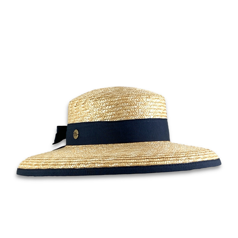 Espectacular y precioso sombrero en color natural, lleva una cinta de grosgais en la parte trasera del sombrero, aportándole un toque original y muy estiloso.