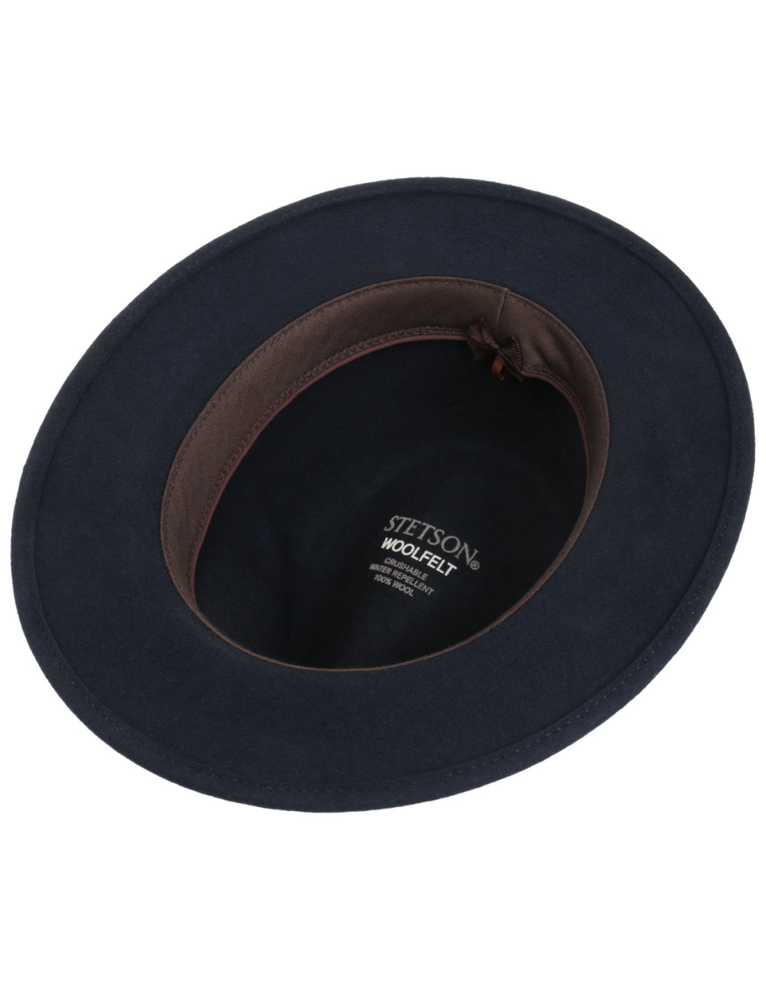 Su fina banda de cuero con pluma decorativa y la artesanía tradicional Stetson reflejan un estilo atemporal. Confeccionado en fieltro de lana premium, cuenta con la innovadora protección Asahi Guard® que garantiza resistencia al viento y la humedad. Además, su forro de algodón suave proporciona un confort óptimo para largas jornadas.